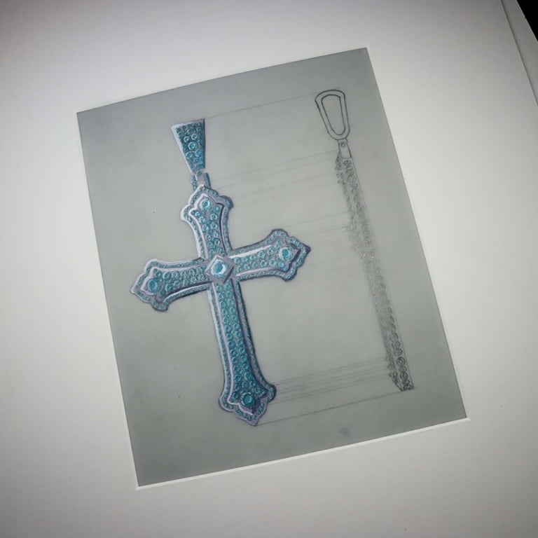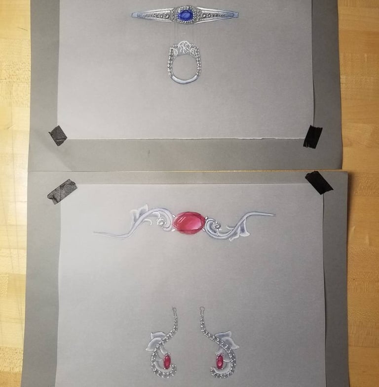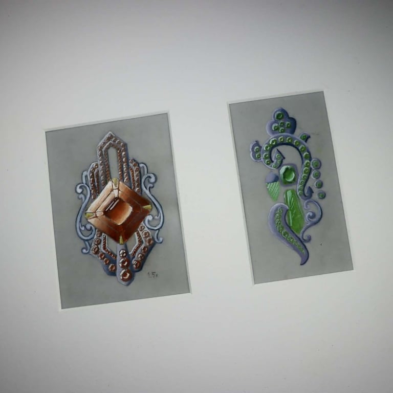 Hand rendered designs in gauche and water color